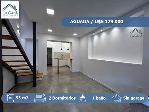 <p>San Martín esq. Isidoro de María- Aguada próximo a Av. agraciada, Palacio Legislativo, medios de transportes, Centro educativos y comerciales.</p><p><br></p><p>Apartamento Dúplex a estrenar totalmente reciclado al frente, totalmente independiente. </p><p>En planta baja se desarrolla: living comedor con barra desayunadora, cocina amplia con muebles bajo mesada y provisión para campana extractora, aire acondicionado y lavarropas</p><p>Baño completo con conexión para Calefón. </p><p>Planta alta: dos dormitorios ambos con ventanas, piso flotante y salida a azotea de uso exclusivo, amplia con parrillero y vista panorámica.</p><p>Electricidad y sanitaria hecha a nuevo. </p><p><br></p><p>Venta: US$ 129.000.</p><p>SIN GASTOS COMUNES. </p><p><br></p><p>Asesor: Stephania Mariño.</p><p><br></p><br>
